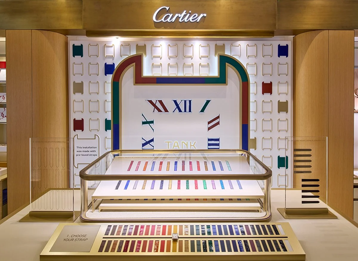 Paying homage to the Tank watch by cartier, we created a luxury customisation bar highlighting the versatility of the watch. Guests were invited to the space to discover the beauty of the legendary product where they were able to choose the lining of their strap to the colour.