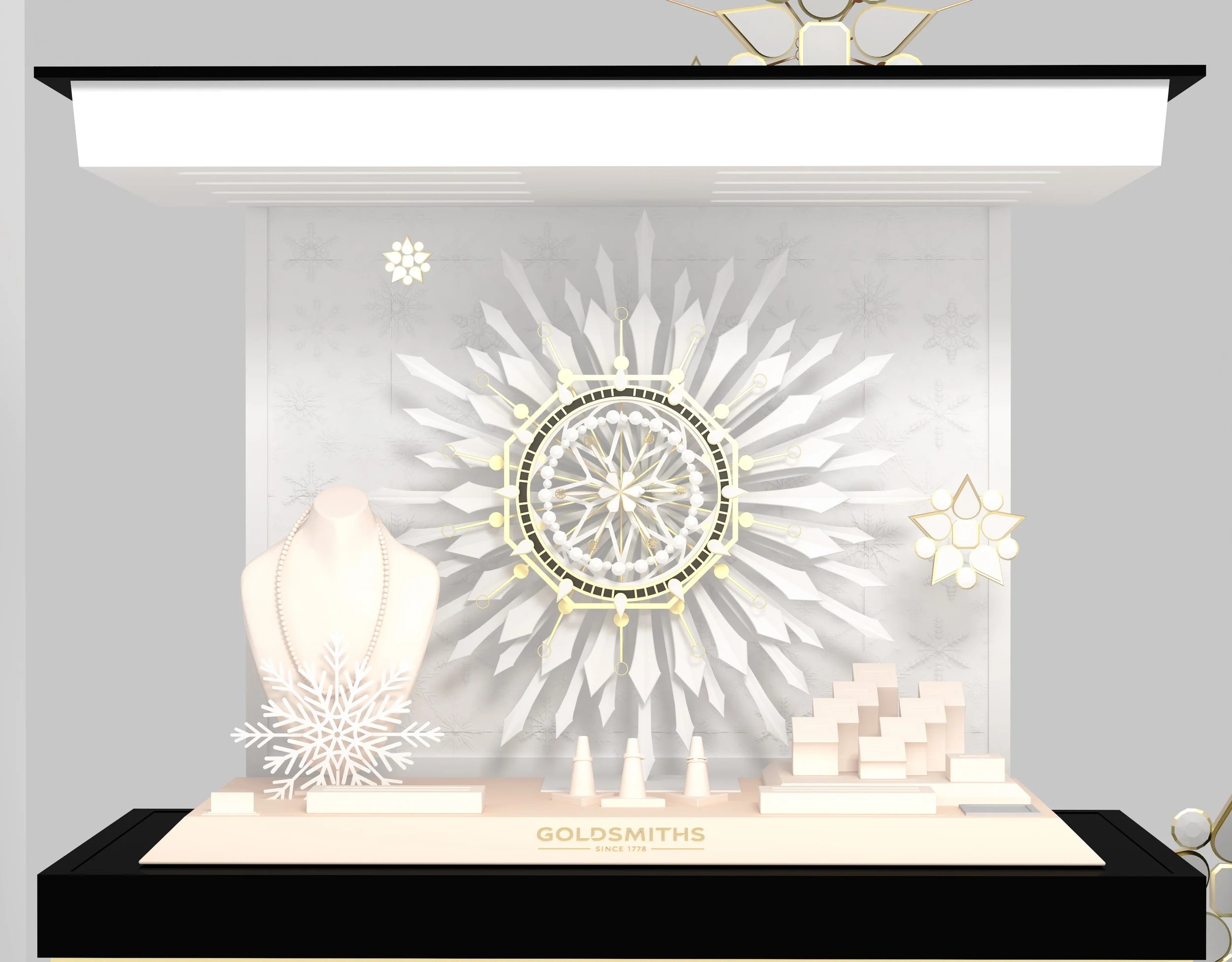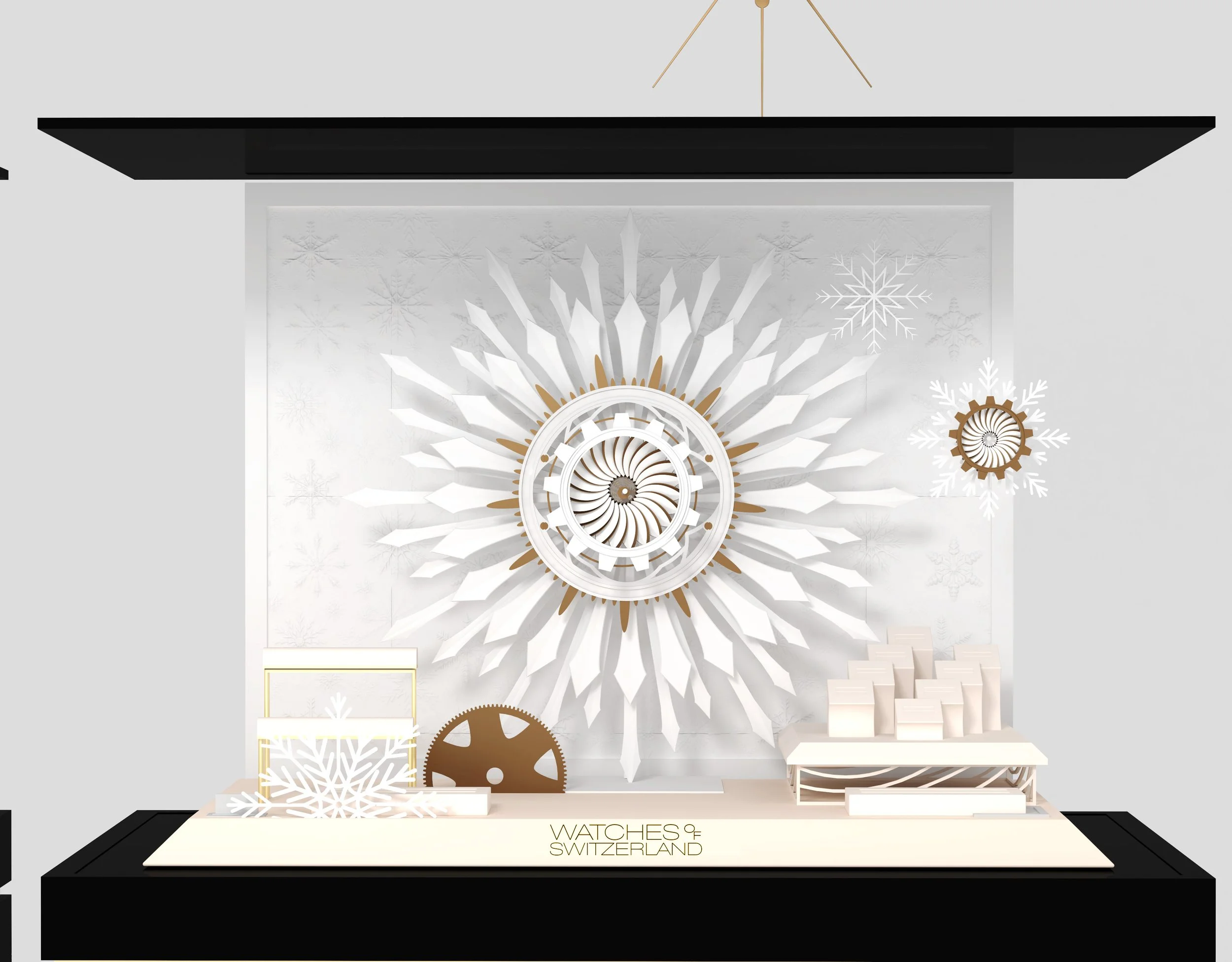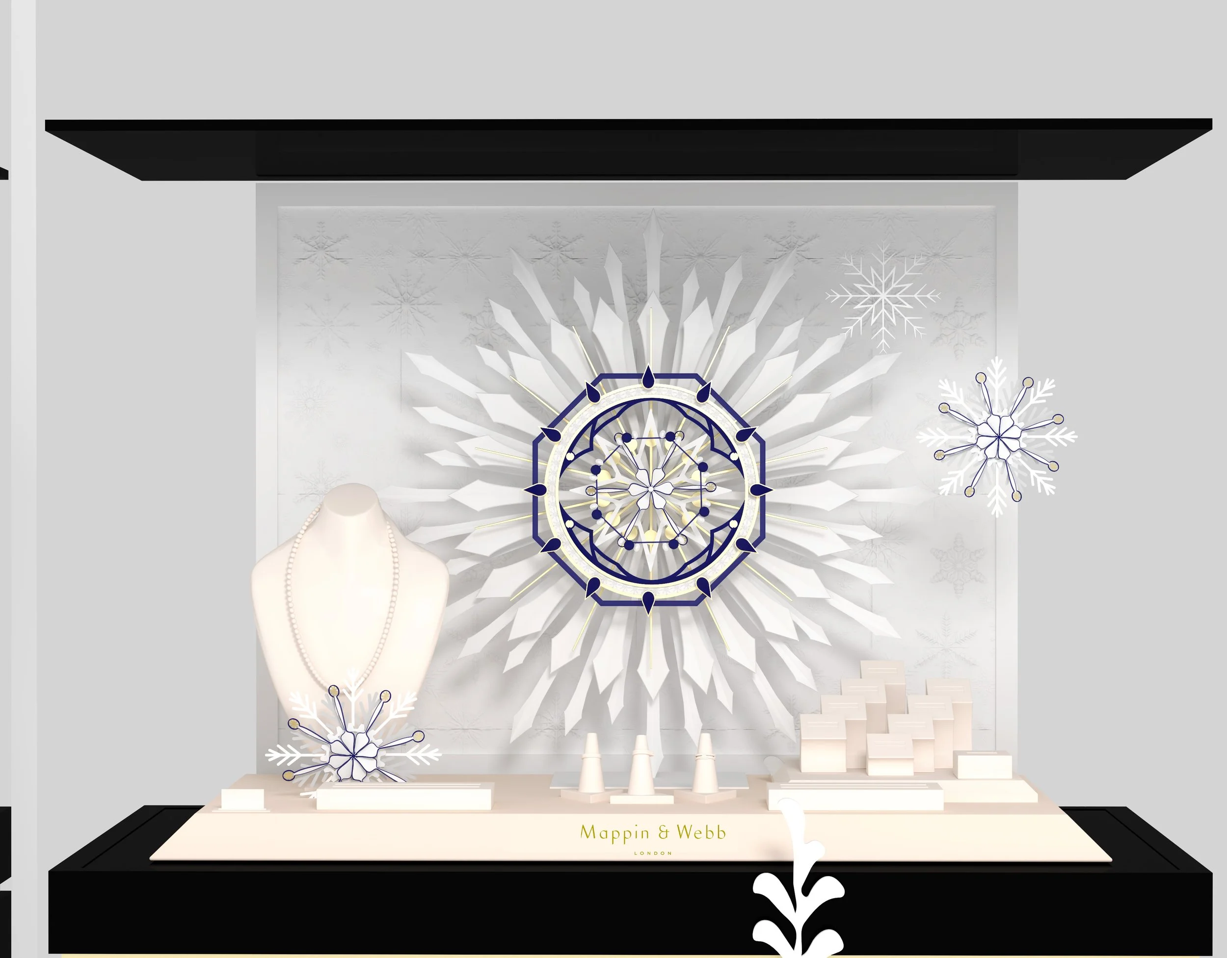 Curating various Christmas displays for WOS windows. The design consisted of card and paper forms with distinct brand colours , defining each from the other. These brands were Mappin & Webb, Goldsmiths and Watched of Switzerland.